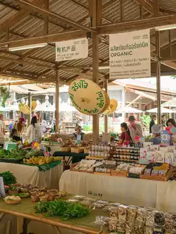 One thing you can't miss when visiting Chiang Mai is the **Night Bazaar**. From handcrafted items made by local artisans to affordable and delicious street food, the market is packed with sights and flavors. The Sunday Market, held on weekends, is a top destination where music and performances create a festive atmosphere.