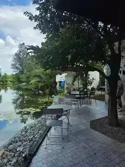 Coffee is also starting to be known in a less widespread way. Muk-Osama Wichaidit has started to open a small coffee shop in her own home area and uses the name A/sa/ma Cafe' (A-sa-ma Cafe) as the real name suggests. It is considered a coffee shop... This shop has a menu of both coffee and many cakes to choose from. They all look delicious. The first menu we ordered was an iced coffee latte for 80 baht. It smells very good of coffee. The coffee flavor is strong.