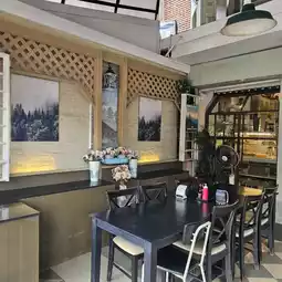The restaurant is clean, airy, and spacious, with plenty of tables.