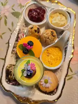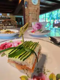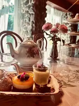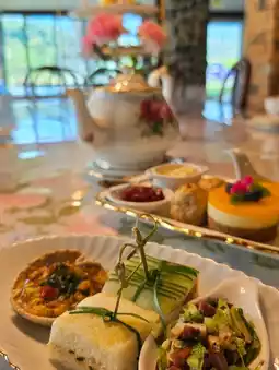 Come sip on afternoon tea here! It's incredibly delicious and not too small. Even though we didn't stop for lunch, we still couldn't finish it. The staff were so friendly and recommended some good things to take home and enjoy later. I loved the scones and sandwiches, all homemade. Enjoy the beautiful interior and the Wiang Ping Rose Garden, where you can take photos. Come enjoy tea, snacks, and admire the roses and the beautifully manicured garden. They also offer accommodations.