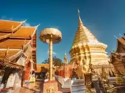 Atop a mountain overlooking Chiang Mai city, Wat Phra That Doi Suthep is a symbol of Northern Thai Buddhist culture. Its golden pagoda shines, and legend has it that it was built where a white elephant stopped.