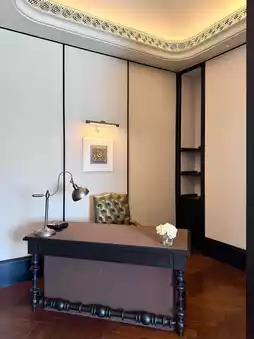 One of the most beautiful rooms in the hotel is the Presidential Suite, which is the largest room in the hotel. Located on the 16th floor, room number 1618, it is designed with luxury and the exquisite craftsmanship of traditional Thai artisans. The room combines intricate wood carvings with refined metalwork. The interior is spacious and meticulously decorated.