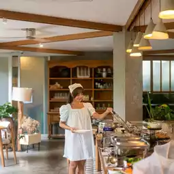 For breakfast, you have to wake up early for breakfast. Their breakfast was delicious, a buffet-style meal with a wide variety of dishes, including Thai, international, and local favorites like nam prik num.