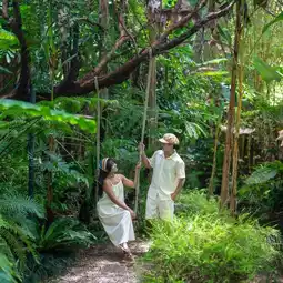 A resort in Chiang Mai city that feels like a 2-in-1 day out of town, close to both the city and nature. The atmosphere is peaceful, with a small stream flowing throughout the resort, and they even keep koi fish in the stream, giving it a subtle Japanese-style feel.