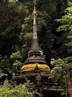 Wat Phalat (Sakidakami) is located on the way up to Doi Suthep. Tucked away amidst the forest, this temple is steeped in history. Inside, you'll feel the beauty of its ancient chedi and statues. A small waterfall flows through the temple. The highlight of Wat Phalat is the chedi, which dates back to the time of Kruba Srivichai, but was built by Burmese craftsmen. It's believed the shape is similar, and the Lanna people were deeply connected to Buddhism in the past.
