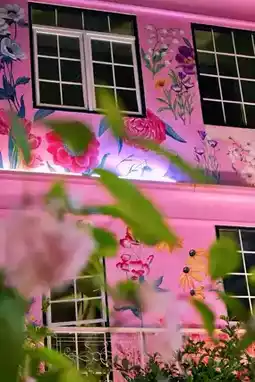 While shopping with my bestie on Nimman Road, we unexpectedly came across a pink Ganesha. We learned this is a handmade craft market, filled with colorful lights and fabrics, but the best sight is the pink buildings, with pink walls and patterned designs, creating a strong Thai romantic atmosphere.