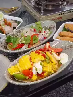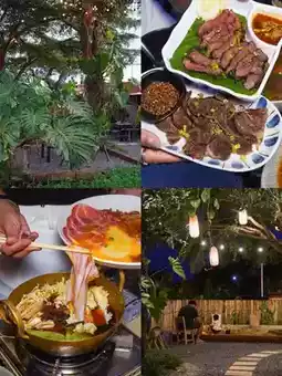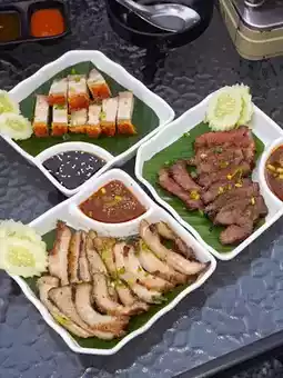 🥢The main menu item is the spicy pork fondue, available in a pork fondue set or beef fondue set, starting at 185 baht per set (additional options available). Other recommended dishes include grilled Australian beef picanha with jaew sauce, crispy pork with Dang Than, grilled pork neck, spicy tendon soup, steamed pork with galangal chili paste, and more.
