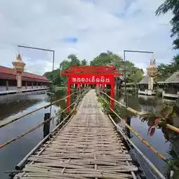 - There's a bamboo bridge decorated with Lanna lanterns.