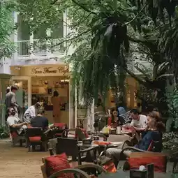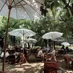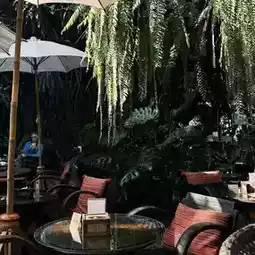 ~ This is a popular cafe in Chiang Mai. Walking in, you feel like you've stepped into nature. Everywhere you look is lush and green. There's a small, shady garden. The shop is surrounded by large trees, ferns, and various plants. Overall, I really like it.