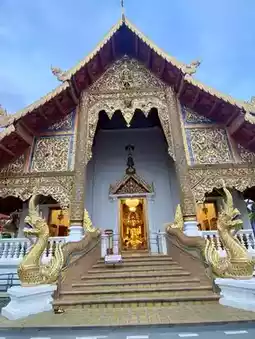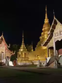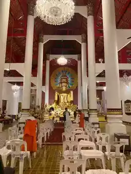 Located on Sam Lan Road, this beautiful temple is open until 8 PM. On Sunday evenings, there is a walking street market right in front of the temple, offering a variety of food and goods. The temple is well-maintained and very clean. It is especially stunning at night, even more so than during the day, making it a great spot for photography. Inside the chapel, the doors and windows are adorned with intricate Thai patterns. Entry is free, and visitors can make donations in the provided boxes. The temple opens early in the morning (it was already open at 6 AM when I visited), and you can even see monks collecting alms in the morning. Although the temple is not very large, the monks' living quarters are separated and off-limits to the public.