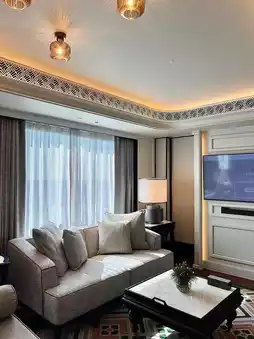 I took this opportunity to try a new room type. This time, I stayed in a 1 Bedroom Suite, which is 69 square meters in size. The room is beautifully decorated, and I personally feel that it is much more luxurious compared to the Premium Room I stayed in previously. The suite features electric curtains, fully automated bathroom systems, two bathrooms, and a Dyson hairdryer, unlike the standard rooms that come with regular hairdryers. I particularly loved the living room area, which felt spacious and comfortable. The decor is elegant and truly fitting for a suite.