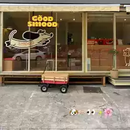 👀🐶 Dogs are welcome here because the shop is open outdoors.
