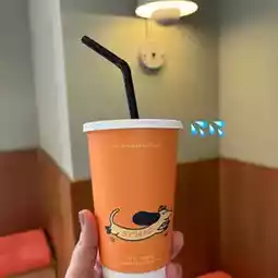 🥭💦 Today, I ordered a mango smoothie and got a cute little dog cup.