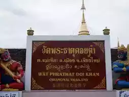 Wat Phra That Doi Kham is an ancient temple in Chiang Mai, famous for its Luang Por Than Jai offerings. It's a popular place to make offerings and fulfill vows with jasmine flowers. It also boasts a beautiful viewpoint of Chiang Mai and a Lanna-style pagoda for worship.