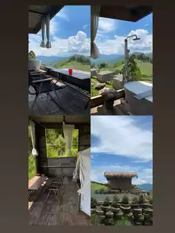 During our visit, it was the late rainy season, and we experienced some rain, which made the atmosphere incredibly pleasant. The property features 10 rooms, with options for rooms with or without bathtubs. Our room had a bathtub, perfect for taking stunning photos with breathtaking views. The serene natural surroundings, free from other houses obstructing the view, offer a 180-degree panorama of mist and rolling hills. It's the ultimate retreat for those needing a break from their busy lives.