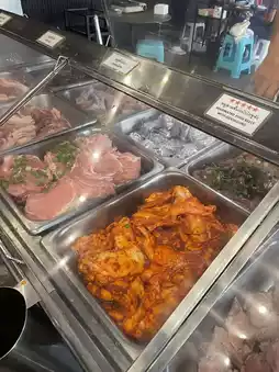 🥩 Our Korean BBQ buffet features Korean-style grills and a variety of dipping sauces. The portions are great value for money. For those who want to eat a lot, this is a great deal, as there's a wide selection of ingredients and prices are lower than some large buffets. For example, "The river prawns are gone in less than 10 seconds." We recommend trying the grilled pork belly (samgyeopsal) and river prawns.
