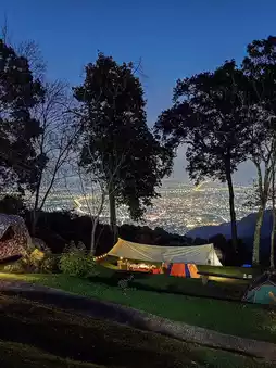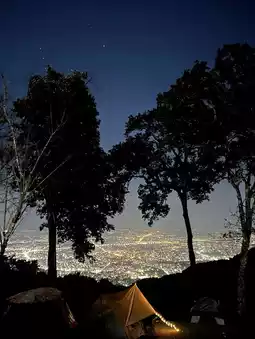 The view is stunning. If you want to experience a relaxing tent experience with stunning views, we recommend Doi Pui. It's about a 30-minute drive from Chiang Mai city. It's easy to drive, and the views are stunning. It's a sea of stars at night.
