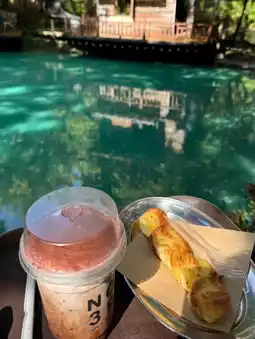 Today, I opted for my favorite menu item, a hot latte ☕️. The coffee here does not disappoint, with a perfectly balanced rich flavor and the delightful aroma of coffee and creamy milk blending harmoniously. Sipping a warm latte in such a relaxing setting, accompanied by soft background music and the view of the clear blue pond, feels like a complete retreat. It's a perfect way to recharge on a day off.