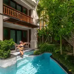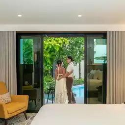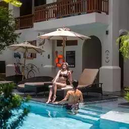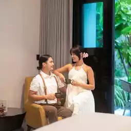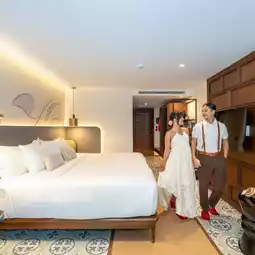 With only 24 rooms, the hotel offers a peaceful and private atmosphere. The room that Wan and Fuk chose was the Pool Access room, which features a balcony directly facing the pool. You can step directly into the pool and enjoy the private Jacuzzi pool on the balcony. The rooms are beautifully decorated and spacious, using tones that exude a luxurious yet slightly vintage feel.