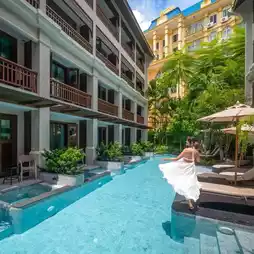 The hotel has a beautiful, well-sized swimming pool in the center of the hotel, complete with numerous sunbeds. You can come here to take beautiful photos or cool off by swimming.