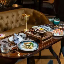 For dinner, I recommend trying their Japanese restaurant, Haru Nimman. You can sit in the lobby, and the lobby is incredibly beautiful. Their food is incredibly stylish and delicious. We had sushi, beef, and my favorite, a miso spaghetti I've never had anywhere else. It's a creamy sauce, but with a miso flavor and seaweed. It's absolutely delicious.