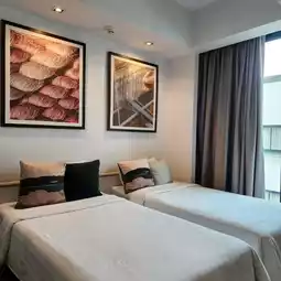 The rooms are simply decorated in minimalist tones, yet warm and clean, perfect for those looking to relax after a day of exploring the city. Amenities include air conditioning, a hot water heater, a TV, and Wi-Fi.