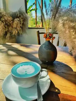 The shop is located not far from Mueang Chiang Rai District. It is easy to get to. The atmosphere is great! The shop is a glass room with transparent light. Natural light shines beautifully in every corner. Taking pictures is great. It is perfect for sipping tea while enjoying the green view.