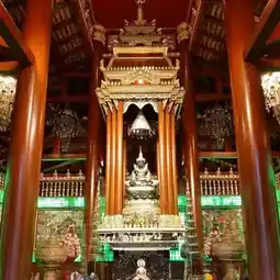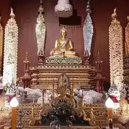 🏡 Lanna-style chapel, inside which is the principal Buddha image, Phra Chao Lan Thong, a bronze Buddha image in the Mara-Vijaya posture, sitting cross-legged. It is the largest and most beautiful Buddha image in the Pala art style in Thailand.
