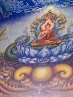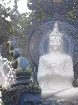 When you enter the temple, your eyes will be drawn to the white glowing Buddha statue in a blue world