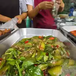 📑 The shop has 8 recommended menus: fried red tilapia with fish sauce, steamed tilapia with plums, red pork and tofu, stir-fried eggplant with drunken noodles, stir-fried wood ear mushrooms with eggs, fried Chinese sausage, stir-fried beef with holy basil, and fried chicken with salt. We tried 3 recommended menus: stir-fried eggplant with drunken noodles, red pork and tofu, and fried Chinese sausage (which was different from what we thought). We also ordered stir-fried morning glory with red chili paste and rice porridge. Every menu we ordered was delicious. Especially stir-fried drunken eggplant and stir-fried morning glory with red chili paste 🥬🫛🌶🥩🍗