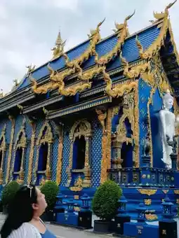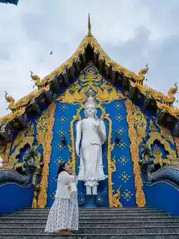 to the blue architecture of Chiang Rai, a temple that stands out for its perfect use of blue and gold. The architecture is truly eye-catching.
