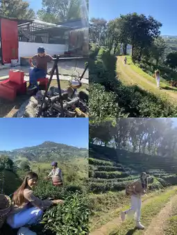 There are many photo spots. There are props. You can walk around the tea plantation.