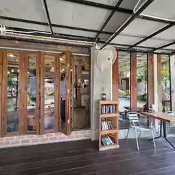 It is a cafe located in the Krirk Rice Mill. It has a shady atmosphere and is decorated in a loft style. There are various facilities such as multiple seating areas, a swimming pool, a children's play area, a work corner, a meeting room, and a workshop area. It serves food, drinks, and bakery products made from rice at affordable prices with good taste and convenient parking.