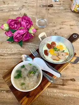 The hotel is situated in a small alley near Singha Park. If there's an event at the park, this is a perfect place to stay as it's very close. The lobby is adorably decorated, giving you the feeling of sitting in a cozy living room at home. The rooms are well-equipped with all the necessary amenities, and breakfast is included. They offer rice porridge, pan-fried eggs, and toast.🍞🥞