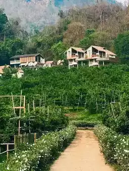 Traveling from the city takes 1:30 hours. This route can be driven in a circle. In the morning, stop by the tea plantation #Chui Fong Tea Plantation, then visit the beautiful flower garden from #Doi Tung, drive to #Pha Hee Village, end the trip at #Pha Mi, stop for dinner