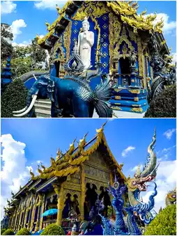 • Blue Temple (Wat Rong Suea Ten): Created by a student of the White Temple's designer, the temple is mainly blue, with gorgeous carvings and exquisite Buddha statues. Admission is free, and it is only a 10-minute drive from downtown Chiang Rai.