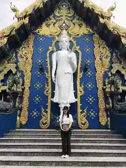 - *Signature photo spots:* Tiger-patterned temple gate + glowing blue lamp