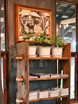 Ban Phang Lang Cafe & Craft is a distinctive cafe located in Mueang Chiang Rai District, near Mae Fah Luang Airport. The cafe stands out with its old timber mill-style design, blending craftwork and wooden furniture that are displayed and available for purchase within the shop.