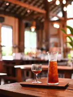 • The cafe is housed in a large wooden building, offering a peaceful ambiance surrounded by nature, perfect for relaxation and photography.