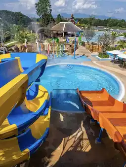 • The swimming pool and water park for children are highlights that families will love, with both a colorful slide and a spacious water play area.