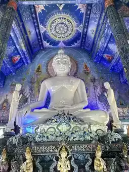 This temple is a paradise for art lovers and those who appreciate the extraordinary. Its signature deep blue color reflects the contemporary Buddhist art created by artist “Sala Nok,” a student of the renowned Chalermchai Kositpipat. Highlight: The large white Buddha statue amidst the blue-and-gold viharn is so magnificent you’ll want to snap endless photos!