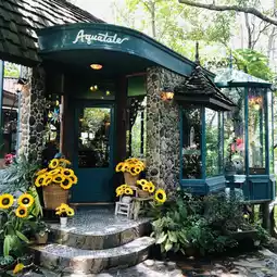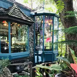 Atmosphere: A cafe on a hillside surrounded by forest, peaceful