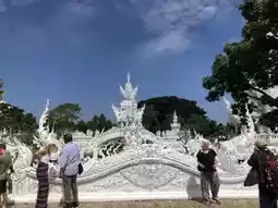 The blend of heaven 🪽 and hell ❤️🔥 in this white world is a photogenic spot 📸. Alongside the path you walk, you'll see depictions of hell (those who have strayed from the path) crying out for help ☠️. You will walk straight towards the heavenly world 🚶. Thai traditional culture and art are expressed in a pure white and highly creative design by an artist from Chiang Rai 🤍💞.