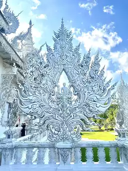 Wat Rong Khun (White Temple) in Chiang Rai is an artistic temple born from the passion and conviction of Thailand's renowned contemporary artist, Chalermchai Kositpipat. Using his own funds and dedicating his life, he designed and constructed this unique space that blends Buddhist teachings with modern art. The intricate details of the structure reflect his messages and philosophy, leaving visitors deeply moved and offering a profound experience of the power of art and faith.