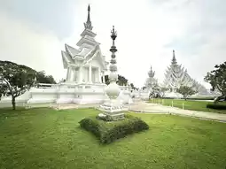 Wat Rong Khun (the White Temple) is renowned for its stunning white architecture, but the temple grounds also feature numerous golden decorations and sculptures. Particularly striking are the golden Buddha statues and the intricate carvings of Naga (mythical serpent-like creatures), which enhance the temple's grandeur and sacred atmosphere. The breathtaking contrast of white and gold creates a mesmerizing scene that captivates visitors from around the world. ✨💛