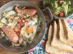 • Pan-fried eggs in Thai-Vietnamese/European styles, paired with freshly baked butter bread.