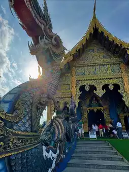 Everything feels fresh and dreamy, from the glowing blue Buddha inside to the crazy-detailed murals that kinda feel like you stepped into a fantasy movie. Even the dragon statues outside look like they might come to life if you blink too long.