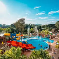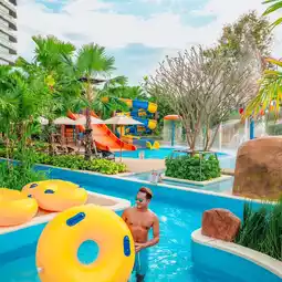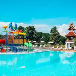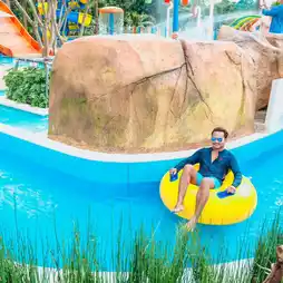 Have fun with the slide, water tunnel, and float on a rubber ring.