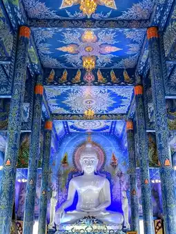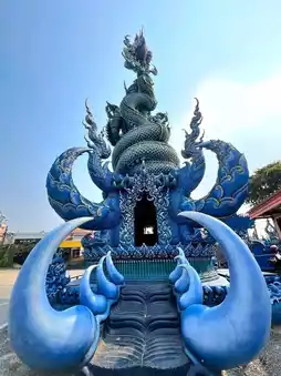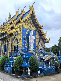 In the quiet northern town of Chiang Rai stands a temple unlike any other Wat Rong Suea Ten, more commonly known as the Blue Temple. Its deep blue walls trimmed with gold feel both modern and sacred, giving off a peaceful glow under the sunlight.