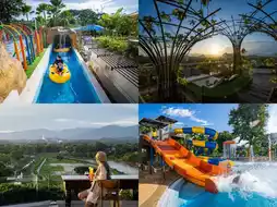 A large water park with fun slides, a slow-flowing river, and a water play zone for children, complete your family vacation with laughter